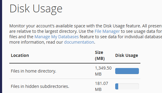 3. In the Disk Space Usage area, you can view which directories are taking up the most space, including your MySQL databases.