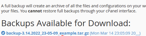 When the backup is finished, cPanel will send you an email notification. You can then download the backup file from Backup → Download a Full Account Backup.