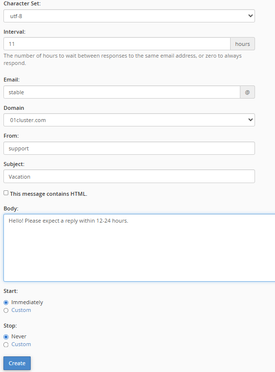 Email: Enter the email address to enable the autoresponder (e.g., enter